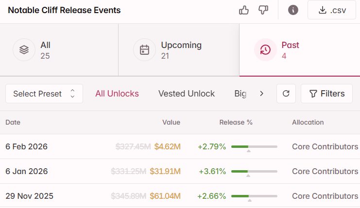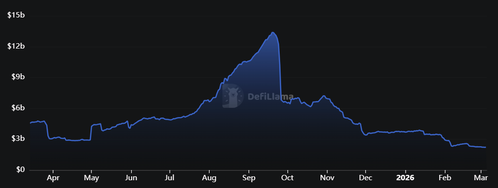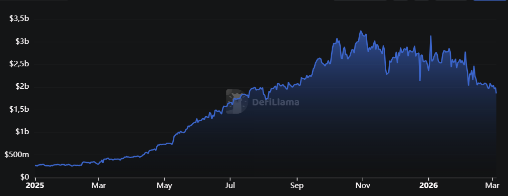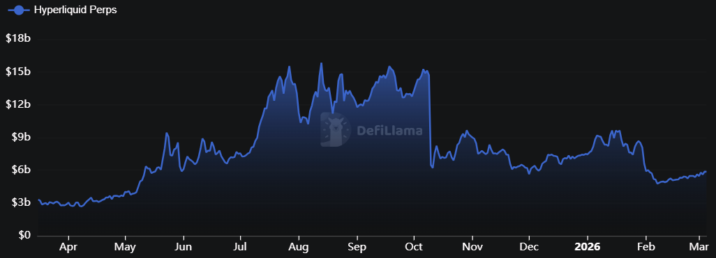 Hyperliquid remains one of the most important venues in on-chain derivatives. As of early March 2026, open interest stood at approximately $5.8 billion, keeping the platform in the mid-single-digit billion range even after a material pullback from the highs reached in 2025. Separately, the core contributor allocation, representing roughly 23.8% of total HYPE supply, began vesting in January 2026, with approximately 1.2 million tokens released monthly.
