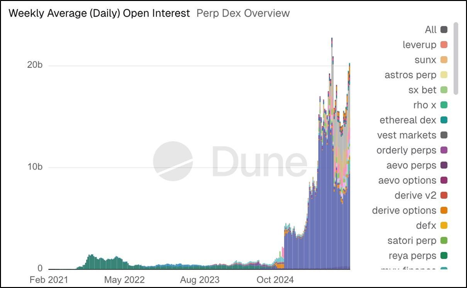 Perp DEX activity remains structurally large. Derivatives continue to function as the primary venue for risk transfer during weak spot conditions. The perpetuals market remains the marginal price discovery mechanism for most digital assets, and on-chain open interest levels, while compressed from the October 2025 highs, remain orders of magnitude above pre-2024 levels.